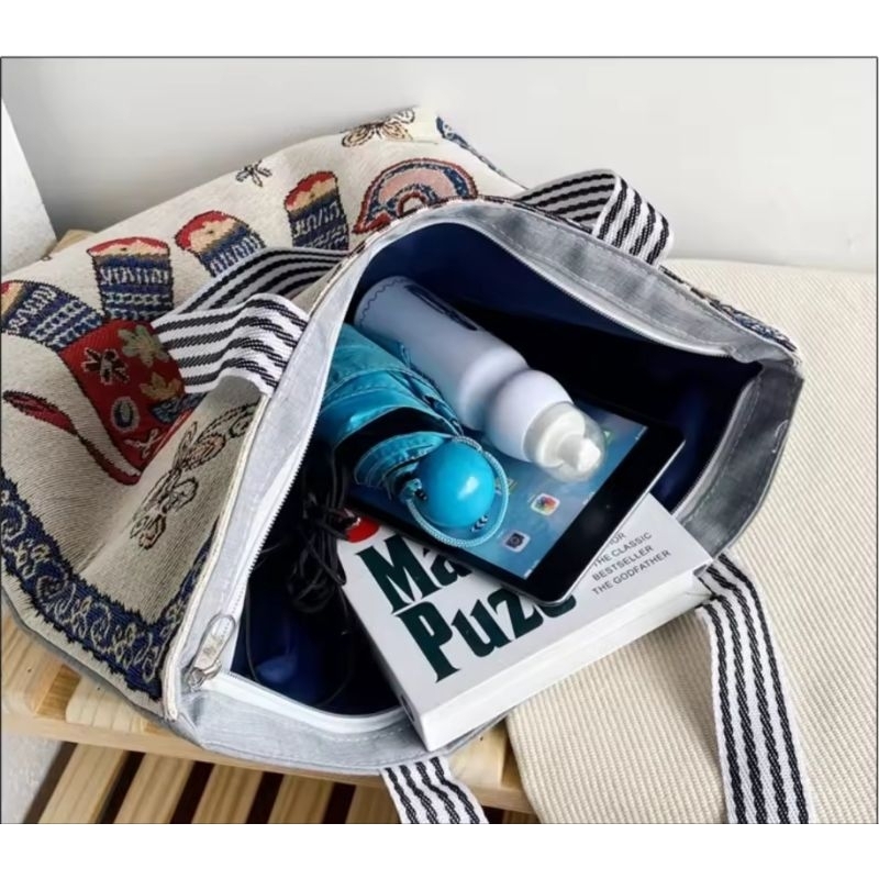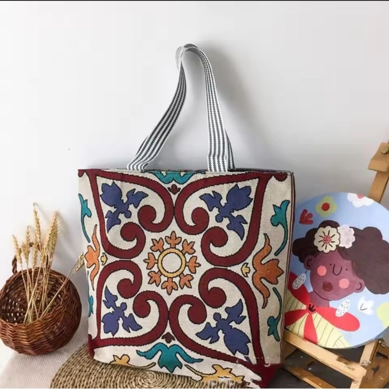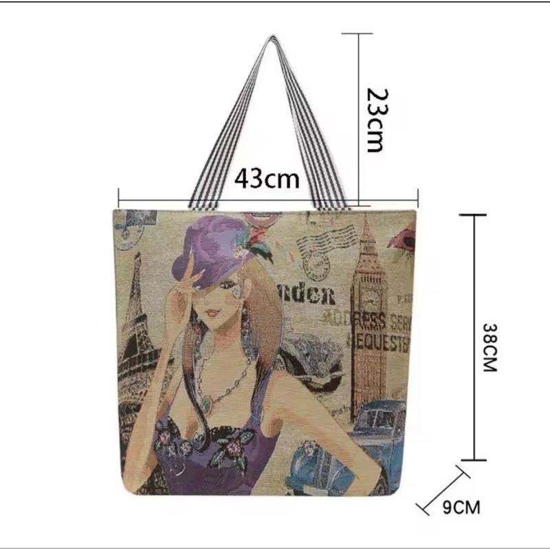 Totebag Kanvas Motif Tas Bahu Tas Belanja Shoulder Shopping Bag Bahan Canvas Fashion Korea Jumbo