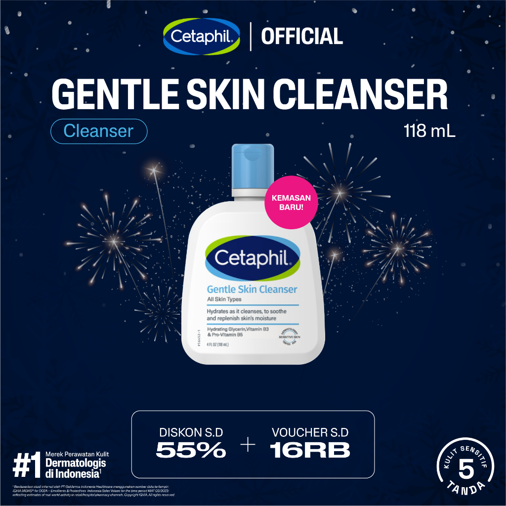 Cetaphil Gentle Skin Cleanser 118ml dengan Niacinamide, Glycerin dan Panthenol Sabun Pembersih Muka Untuk Segala Jenis K