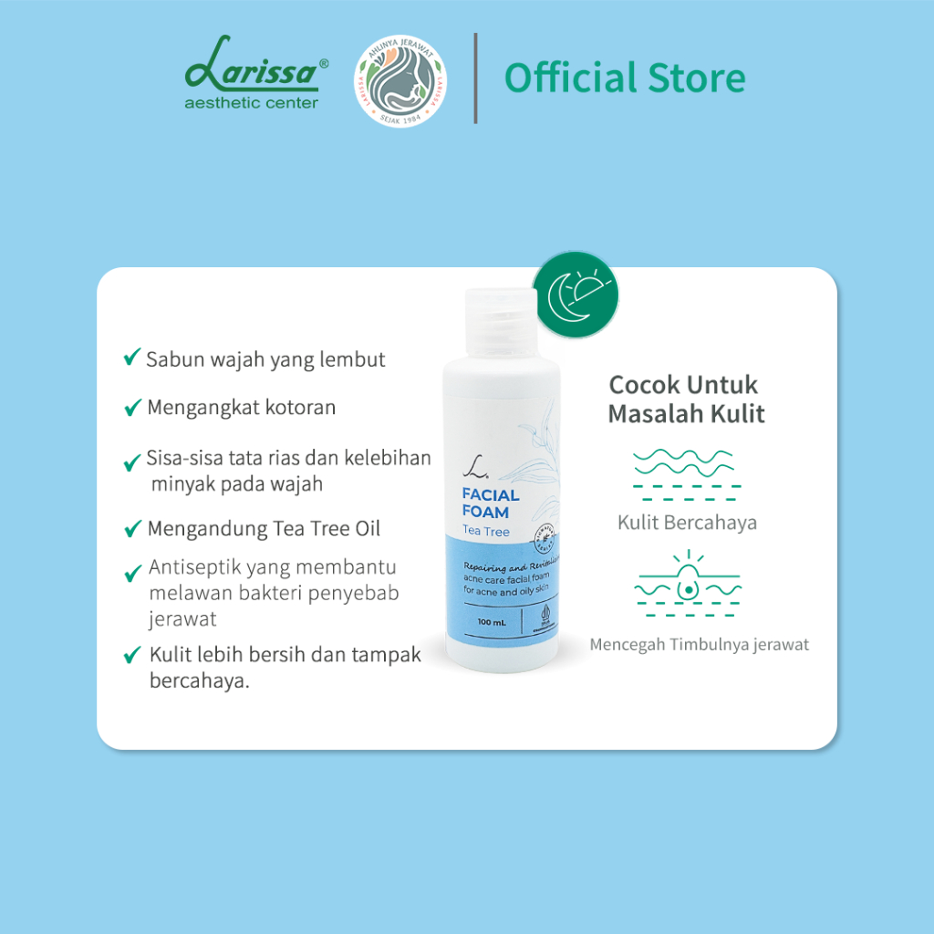Larissa Facial Foam Tea Tree Bening - Sabun Cuci Muka Untuk Berjerawat & Berminyak