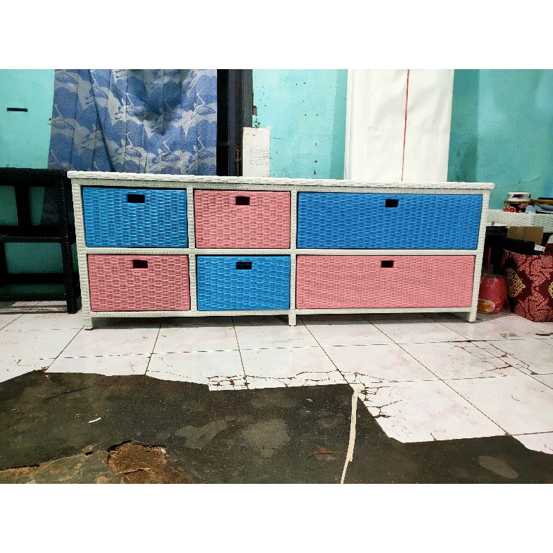 Ready Stok Lemari Rotan Sintetis 8 Laci Samping