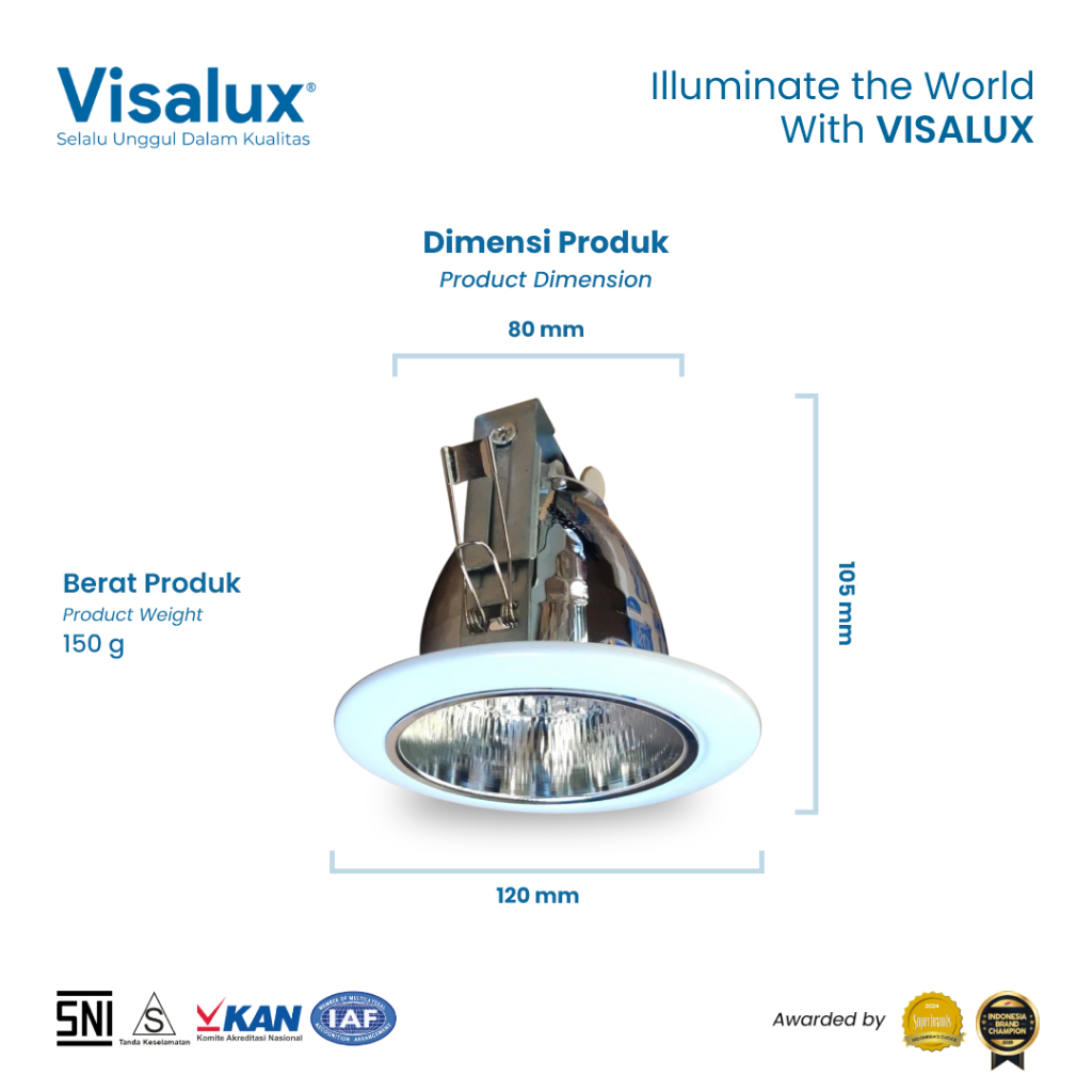 Visalux Kap Lampu Downlight Fitting E27 Caster 3.5 Inch - White (CTR-VDL6535W)