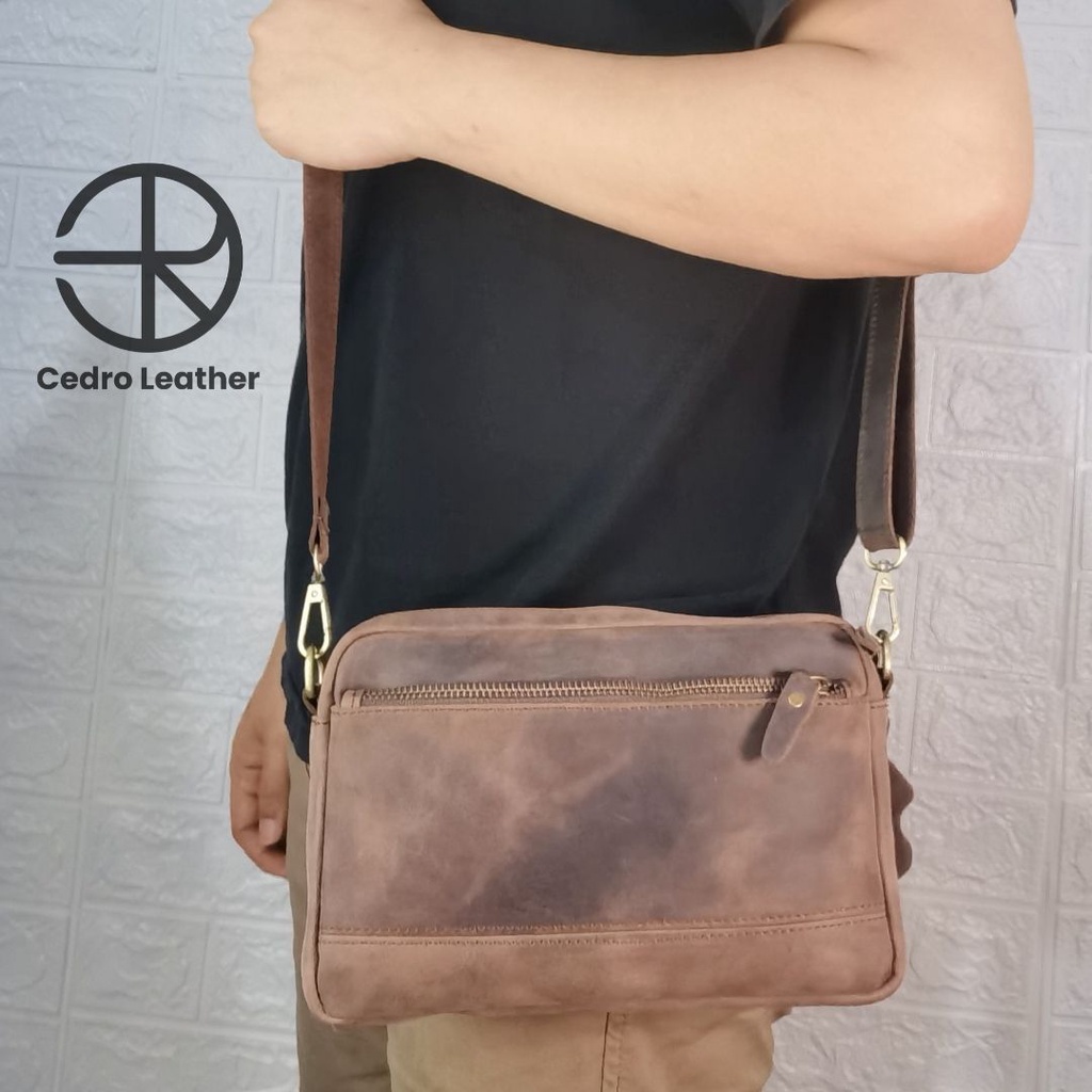 Tas selempang kulit asli 2 in 1 Handbag Free tambah Nama atau logo