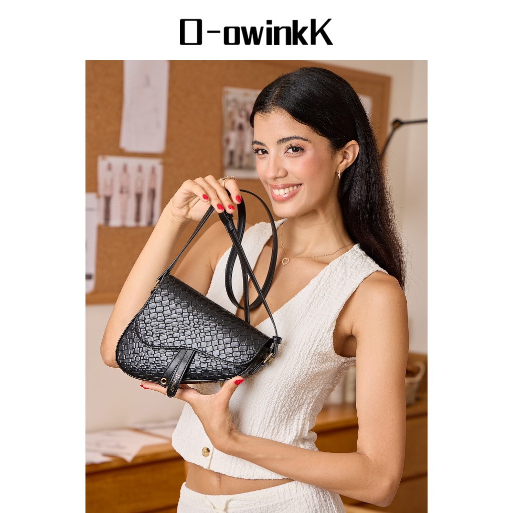O-owinkK Tas Pelana Wanita PU Anyaman Retro Versatil Tangan Bahu Selempang(Kado Tahun Baru)