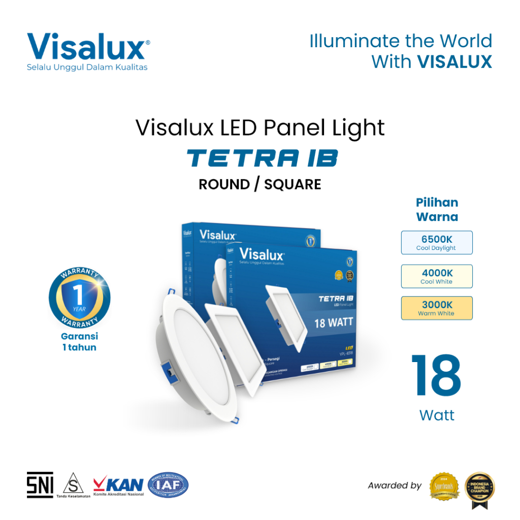 Visalux Tetra LED Panel Light Inbow Lampu Plafon Rumah Downlight 18W Round / Square 8 Inch 3000K/4000K/6500K (VPL8318)