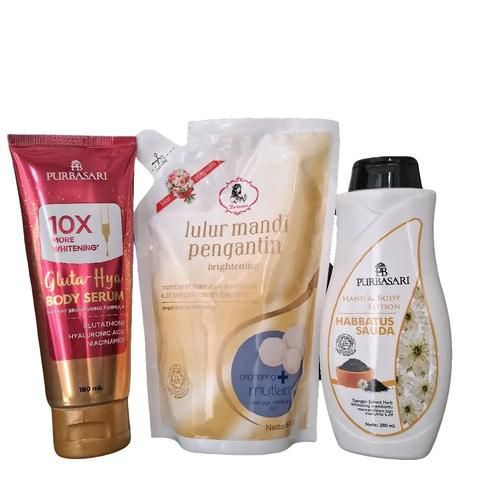 [Isi 3 Pcs] Paket Hemat Purbasari Lulur Pengantin 500gr ll Body Serum 180ml ll Hand&Body Habbatussauda 200ml