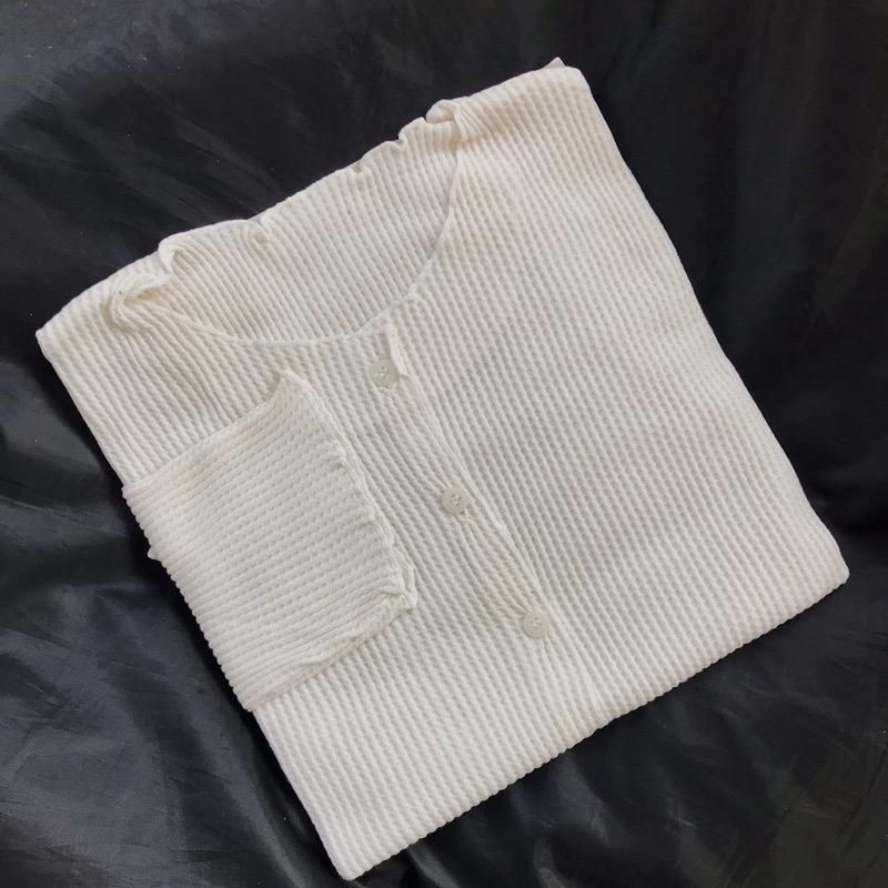 Cardigan er Korean Style Wafer Crop Neck Pinned Long Sleeve