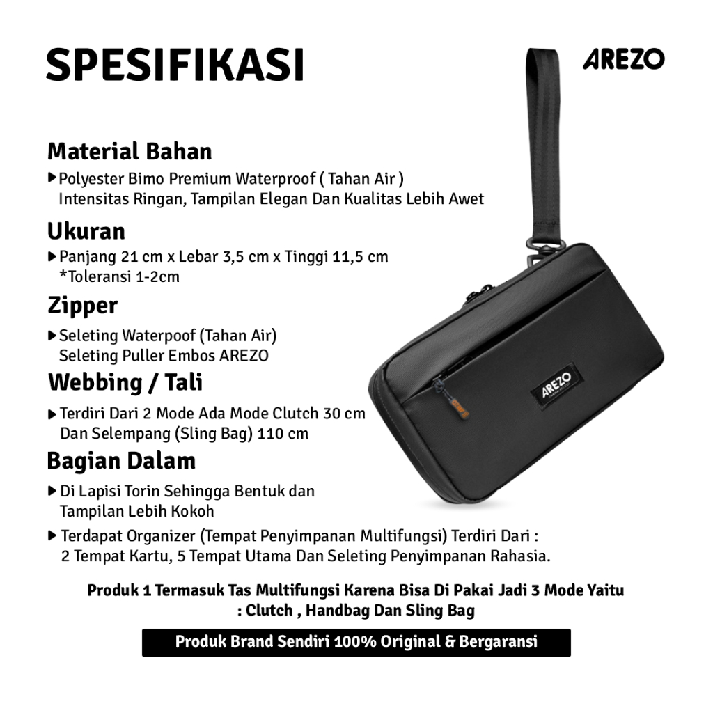 Arezo Handbag Hexa Anti Air Tas Clutch Tas Slempang Pria Wanita