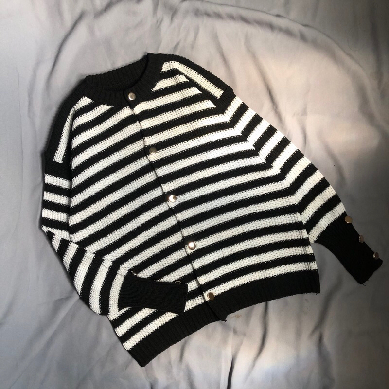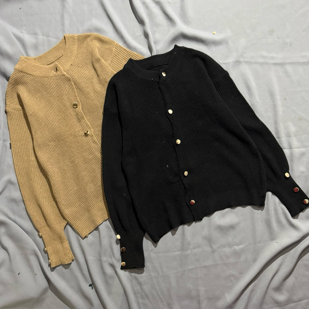 Cardigan kancing kuningan mengkilapcardigan rajut kancing inara cardigan strip