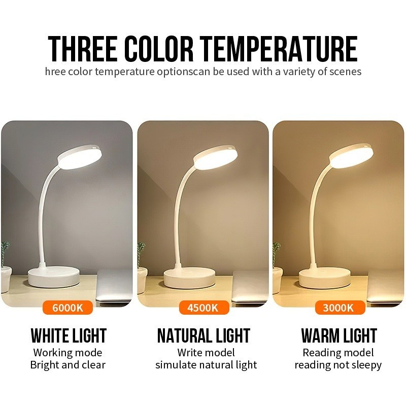Lampu Belajar Lampu Meja Lampu LED Table Lamp USB Plug Rechargeable Desk Lamp Tricolour Sentuh 3 Warna Tempat Pulpen Bac