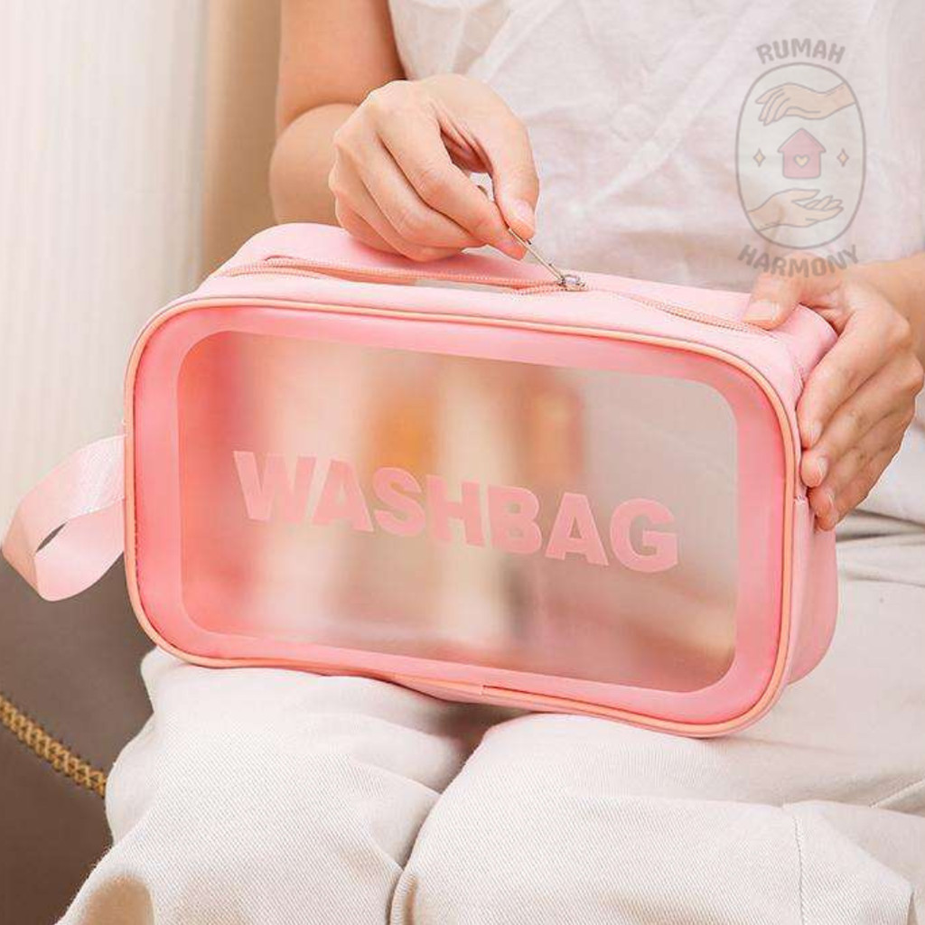 Washbag Transparan Premium Travel Toiletries Bag Kosmetik Waterproof Organizer