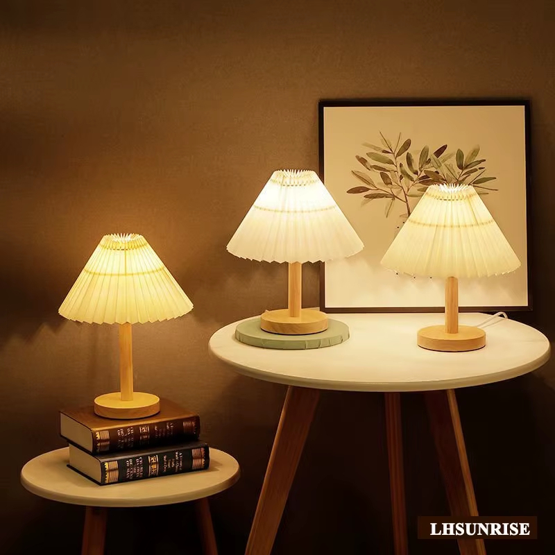 Lampu Meja Minimalis Lampu Tidur Meja Korean Retro Pleated Vintage Lampu Decorative Table Lamp