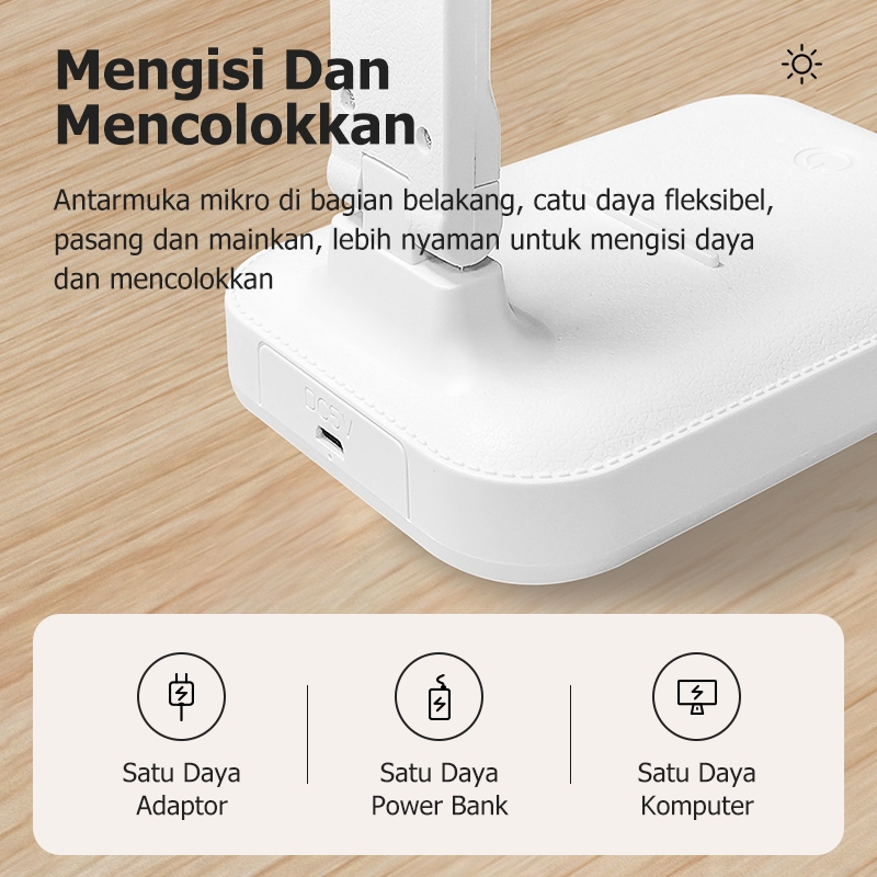 Bajiss Lampu Meja Belajar LED Rechargeble Touch 3 Warna Adjustable Eye Protection Lampu Malam