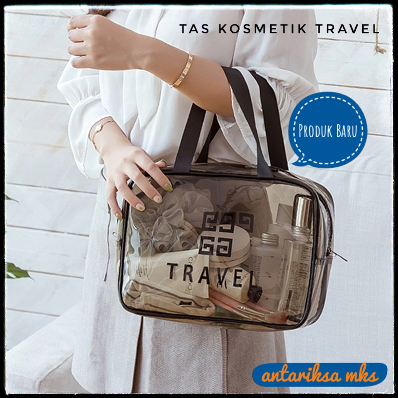TAS KOSMETIK Travel Pouch Transparan Washbag Tempat Make Up Bag Peralatan Alat Mandi Transparant Anti Air