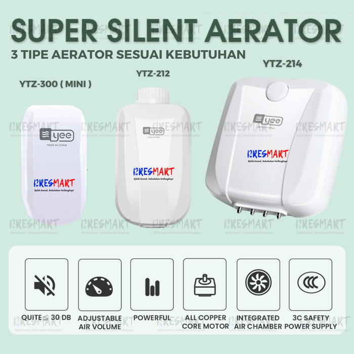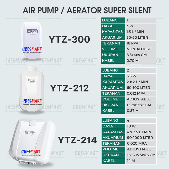 Aerator Silent Super Gelembung Oksigen Air Pump Pompa Udara Aquarium Akuarium Airator AC Listrik 1 2 4 Lubang YTZ 300 21