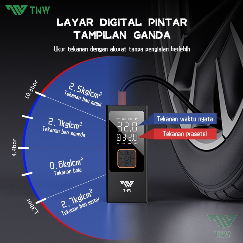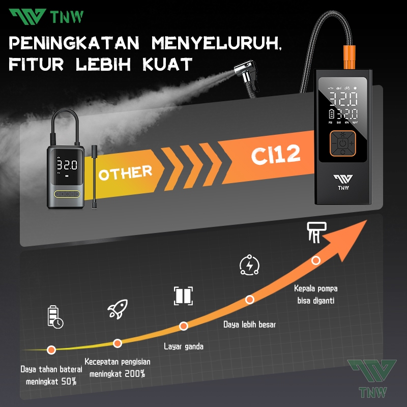 TNW CI12 Pompa Ban Elektrik Mobil Mini Car Air Infatable Pump Portable 10000mAh LED Display
