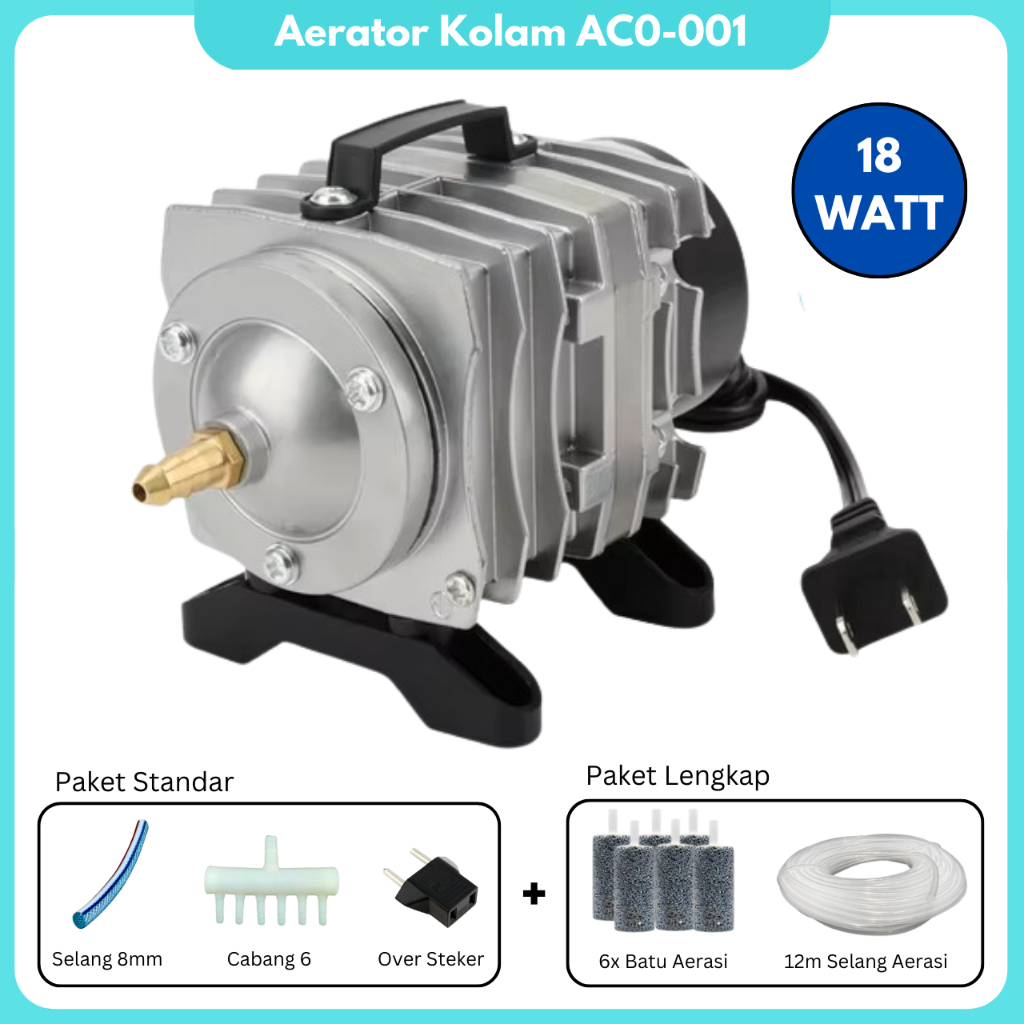 Pompa Aerator Kolam ACO 001 Elektromagnetik Pump Pompa Udara Gelembung Air Akuarium 18W Pompa Ikan
