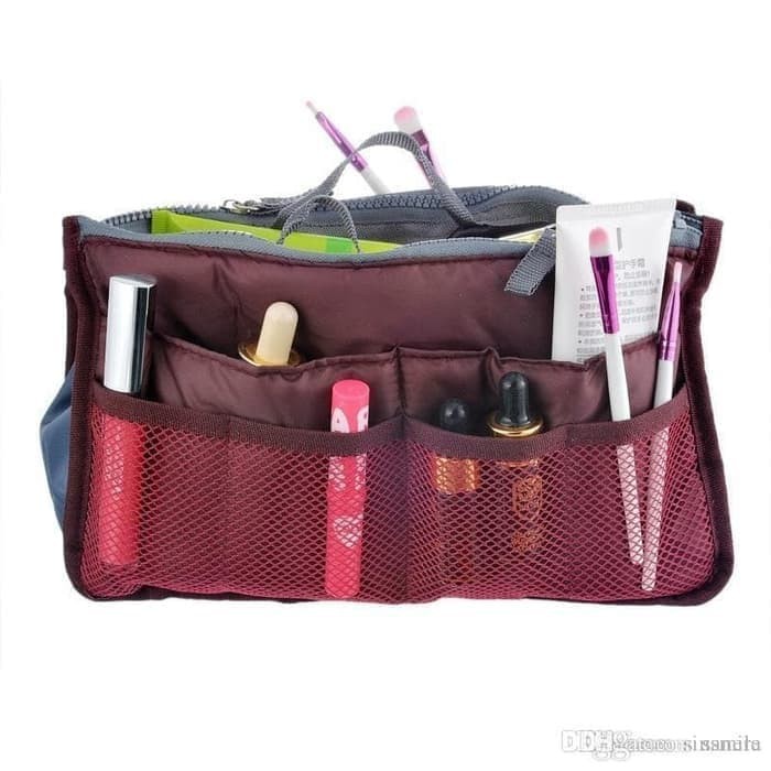Tas Dompet Kosmetik Travel Korean Bag in Bag Organizer Dual Zipper
