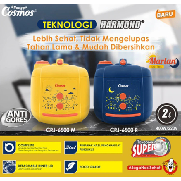Cosmos Rice Cooker CRJ-6500-R – Magic Com Harmond 2 Liter 400 Watt 3in1 Marlan Rembulan Blue