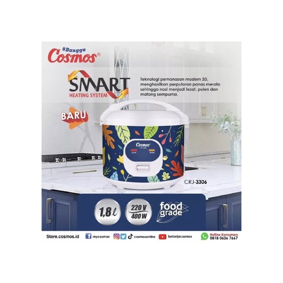 Cosmos CRJ 3306 / CRJ 3305 / CRJ 3026 Rice cooker/Magic Com/Penanak Nasi 1,8L 3in1 Original