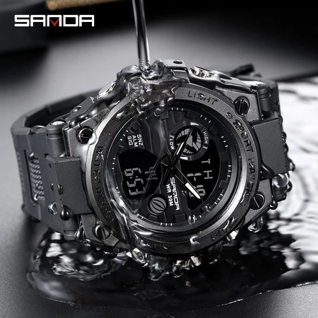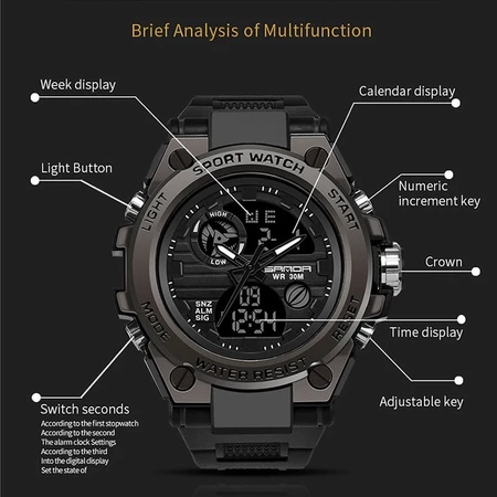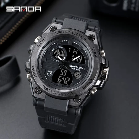 Jam Tangan Pria Digital Analog Tali Rubber Chronograph Anti Air CURRENOS SANDA 739