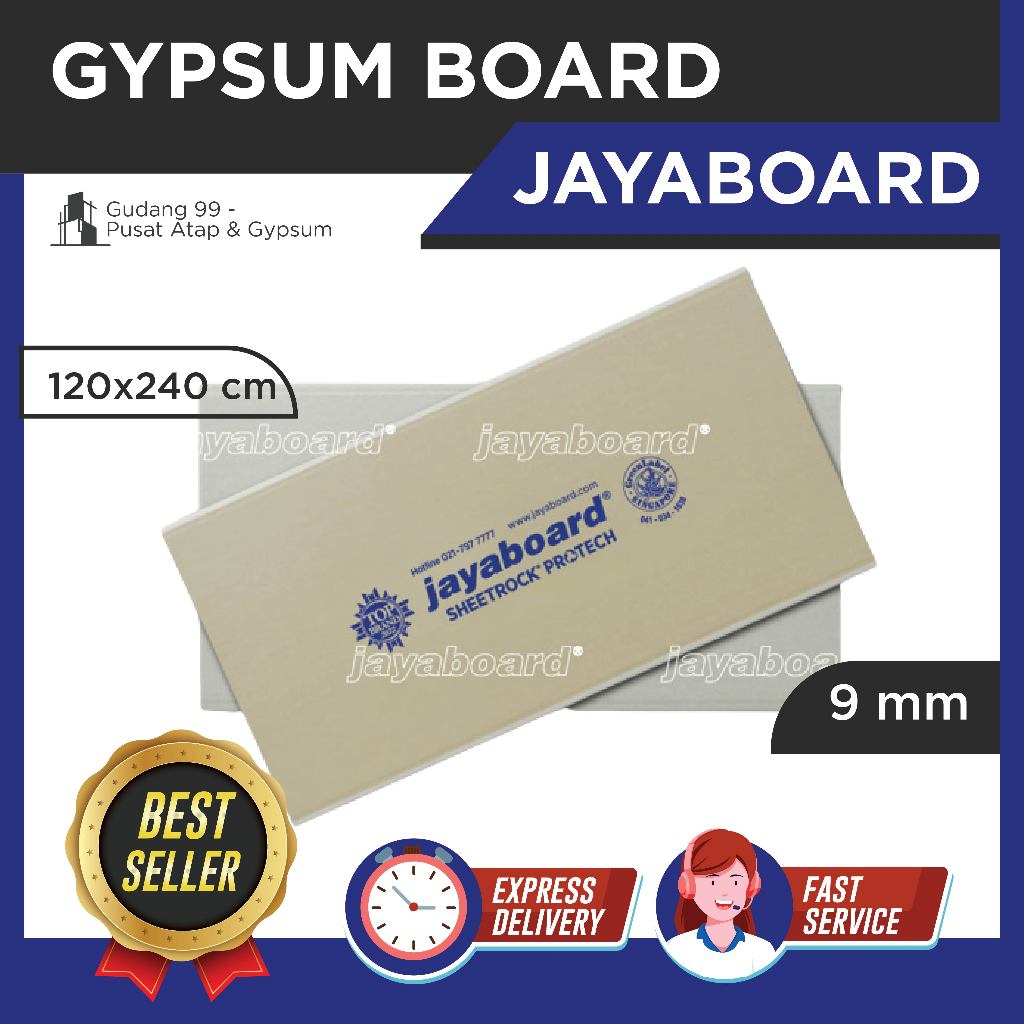 GIPSUM JAYA 9mm / GYPSUM JAYABOARD 9mm 1,2x2,4 m PERLEMBAR