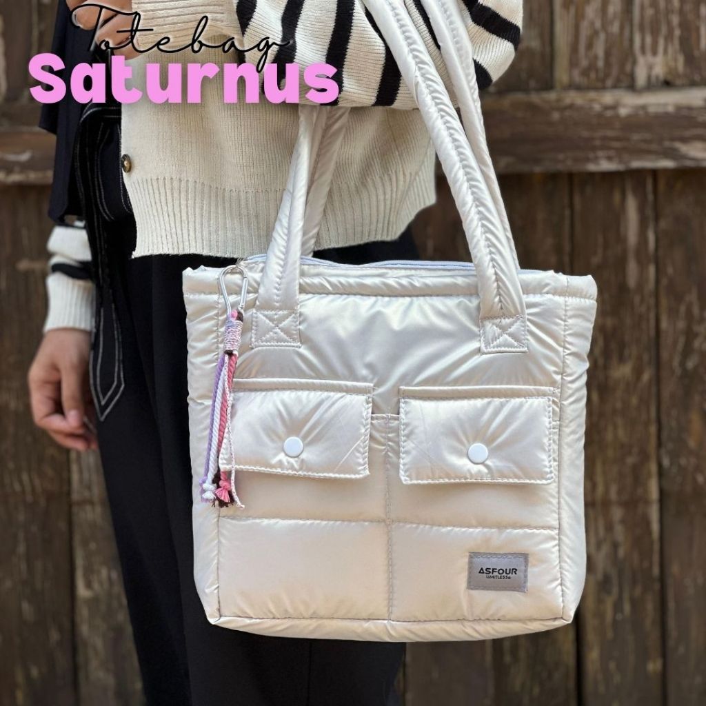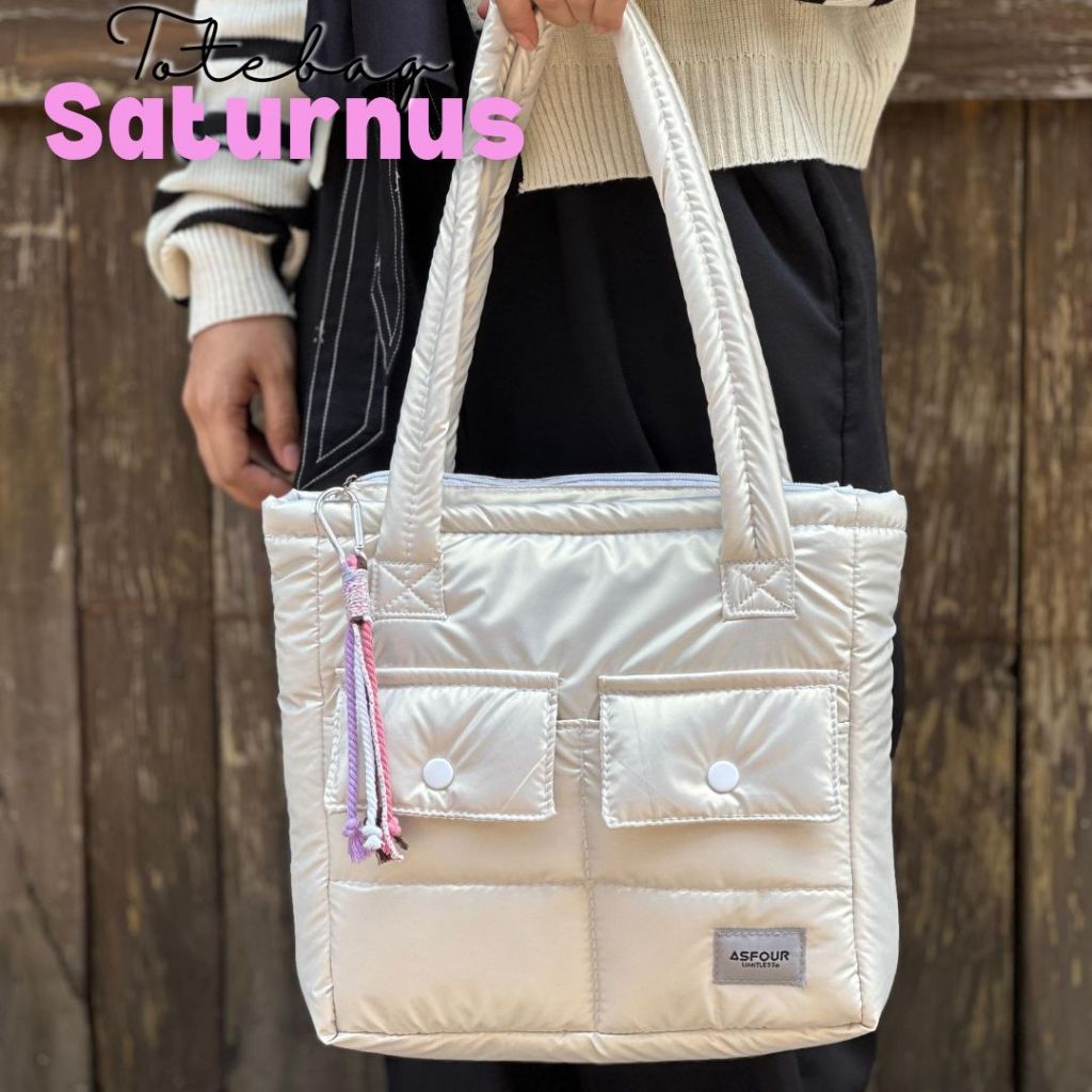 Saturnus Asfour - Totebag fit 9inch Free Gantungan Tas Wanita Kuliah Laptop Waterproof Anti
