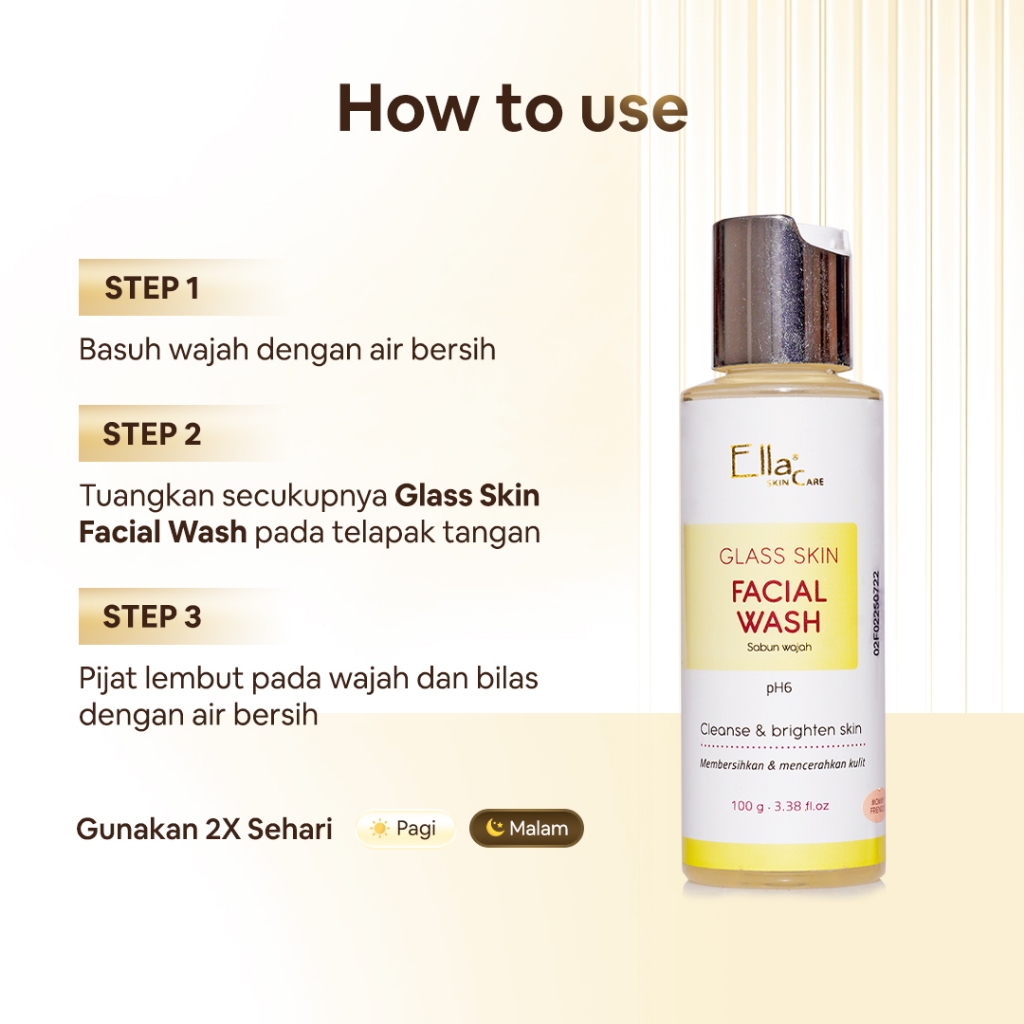 Ella Skincare Glass Skin Facial Wash with Glycolic Acid, Vit E, pH 6 - Kulit Cerah & Glowing