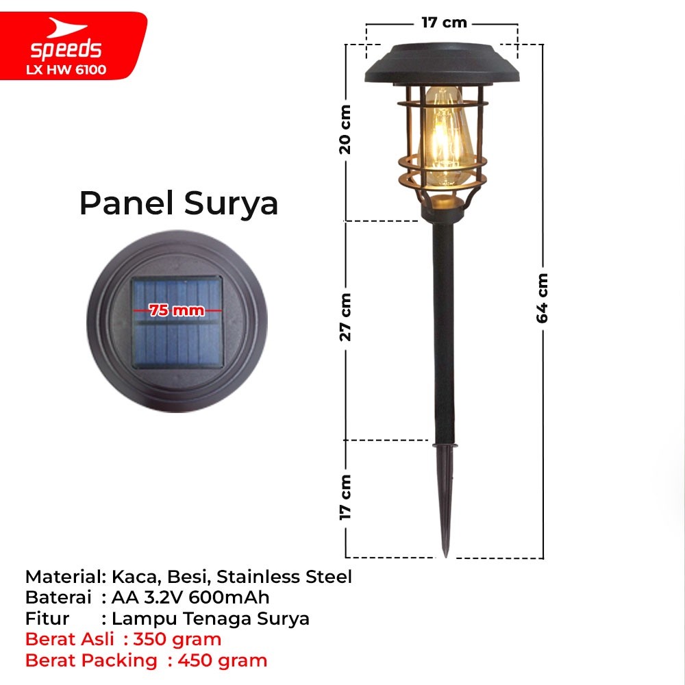 SPEEDS Lampu Taman Panel Tenaga Surya Matahari Lampu Tancap Penghias Taman Outdoor Anti Air Garden Lamp 202-6100