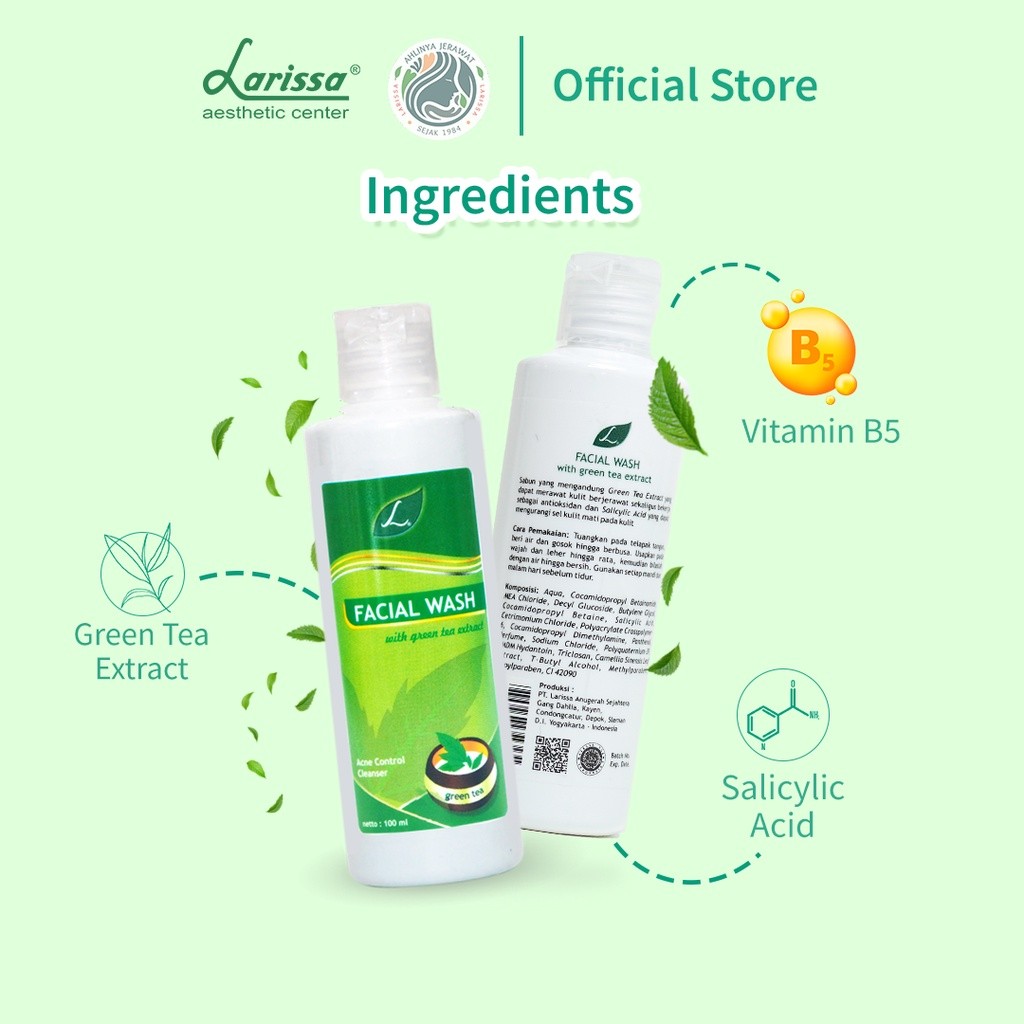 Larissa Facial Wash Green Tea Extract Sabun wajah Untuk Kulit Berjerawat/Berminyak/Kombinasi