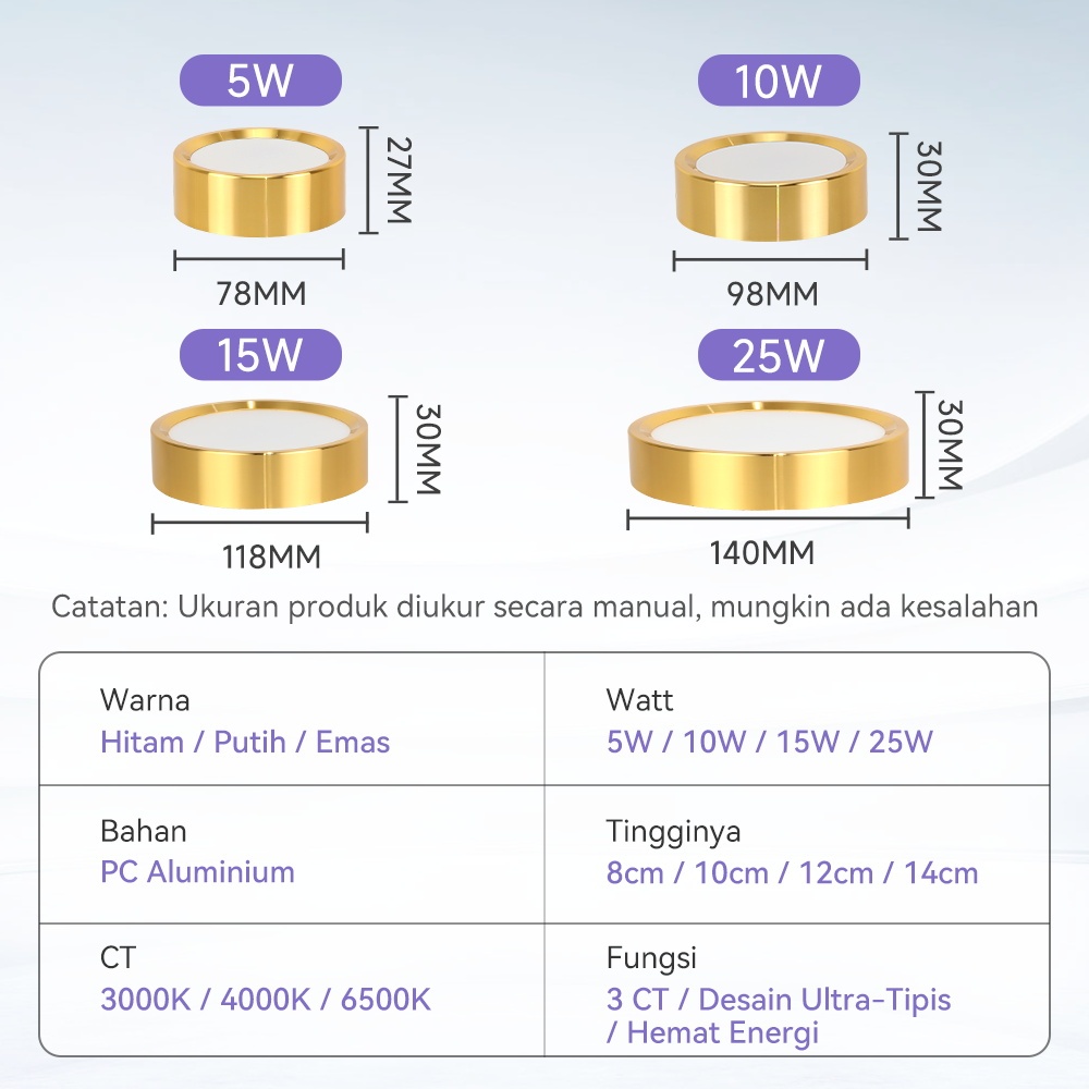 CANMEIJIA LED Lampu Downlight Plafon 3 Warna Lampu 5/10/15/25W Hemat Energi 220V Donlet Kamar Tidur Rumah Pencahayaan