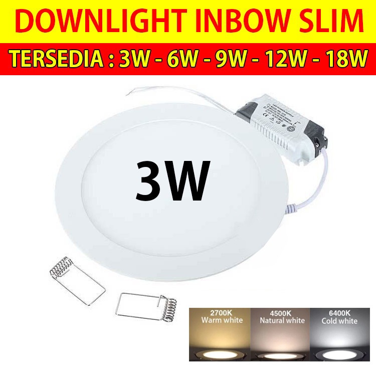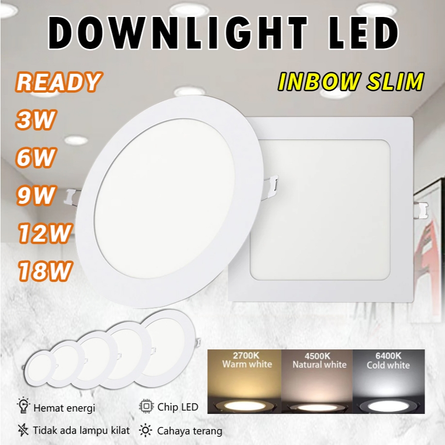Lampu Downlight LED Panel Tipis Bulat Inbow 3W 6W 9W 12W 15W 18W PUTIH
