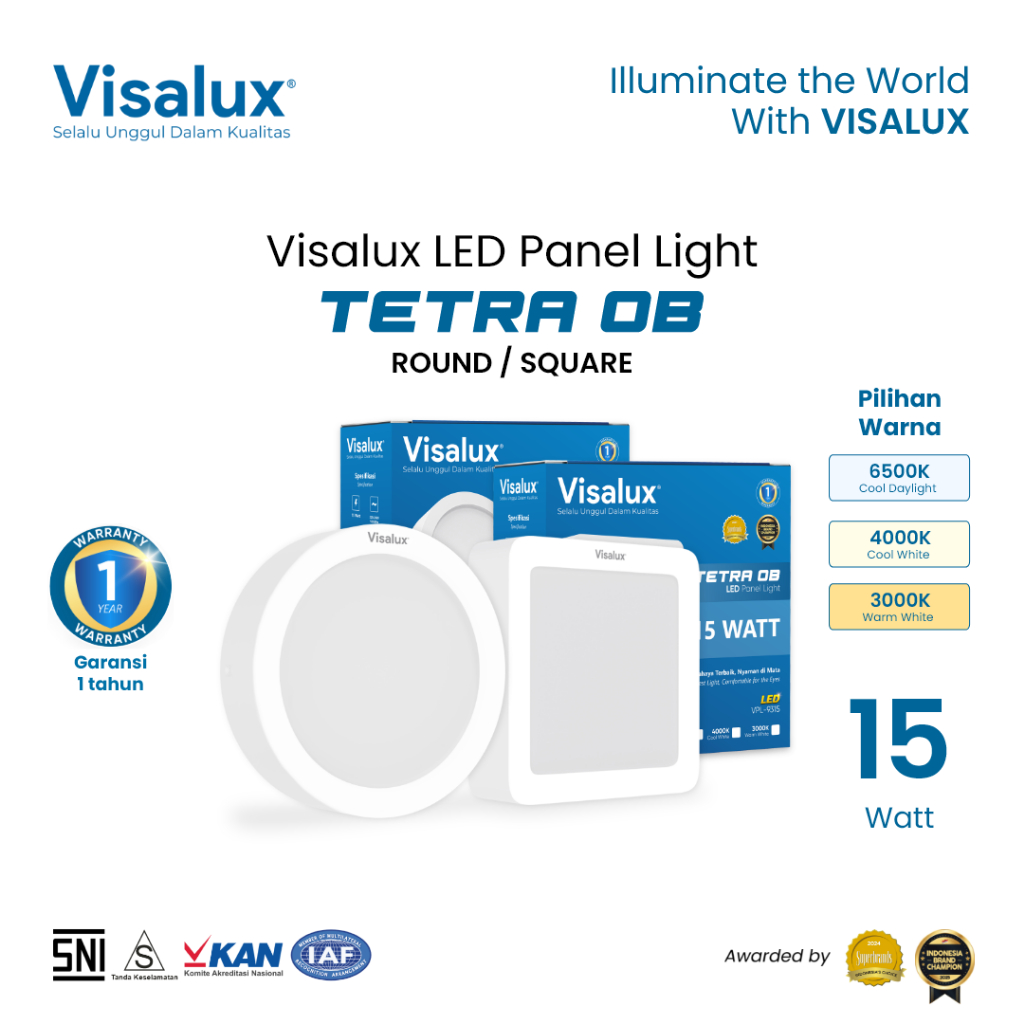 Visalux Tetra LED Panel Light Outbow Lampu Plafon Rumah Downlight 15W Round / Square 6 Inch 3000K/4000K/6500K (VPL9315)