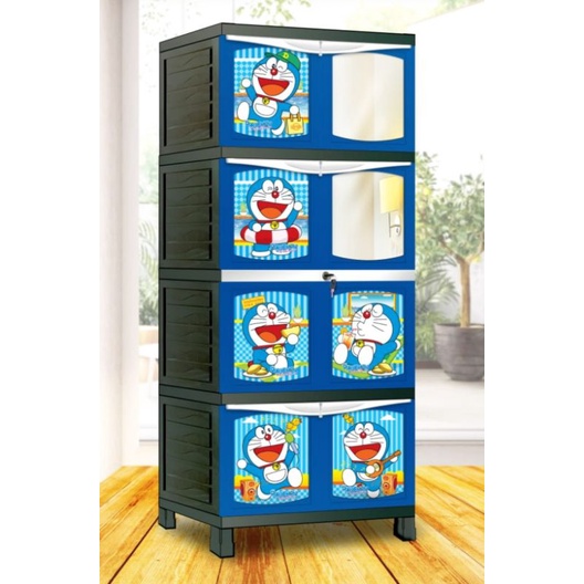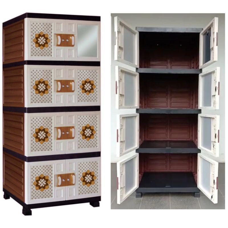 Lemari pakaian lemari plastik jumbo motif rotan/batik susun 4 dan 3 +cermin