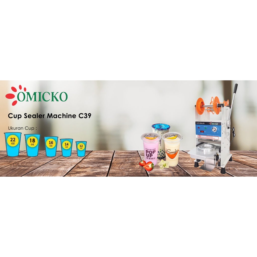 OMICKO C-39 mesin Cup Sealer semua ukuran AQUA GELAS 12 , 14 , 16 , 18 , 22 OZ Low Watt Garans Resmi