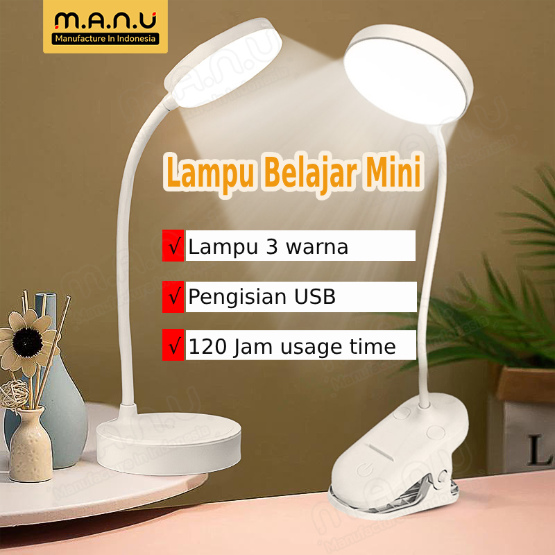 Manu Lampu Belajar Tricolour 3 Warna Lampu Meja Belajar Tempat Pulpen Baca Meja Kerja Duduk Lampu Tidur Wireless USB Rec