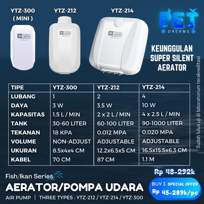 Silent Super Aerator Oksigen Air Pump Pompa Gelembung Udara Aquarium Akuarium Airator YTZ 300 212 214 AC 1 2 4 Lubang Ik