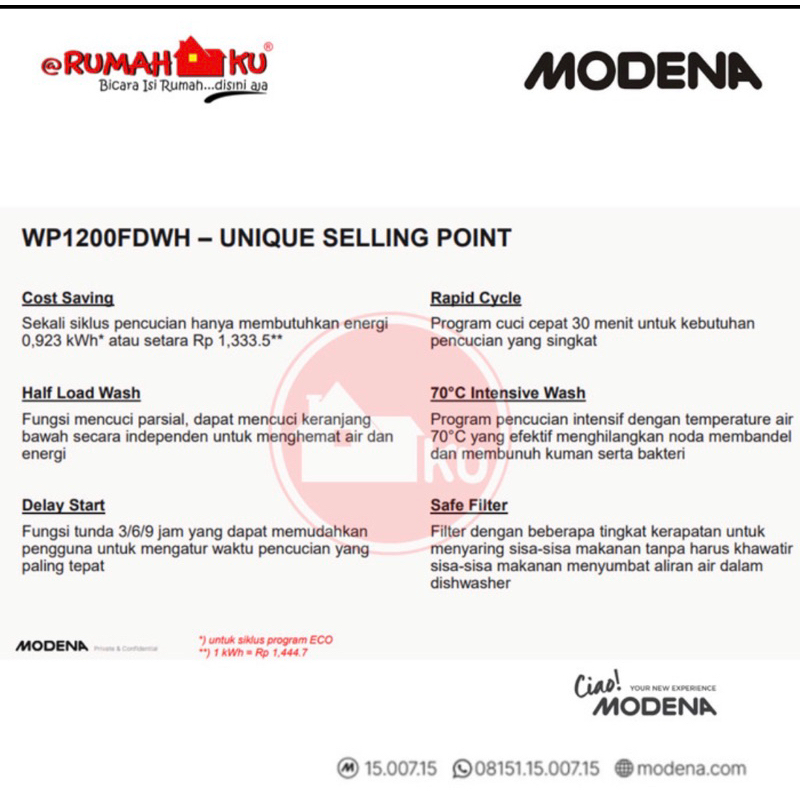 MESIN CUCI PIRING MODENA WP 1200 FDWH DISWASHER