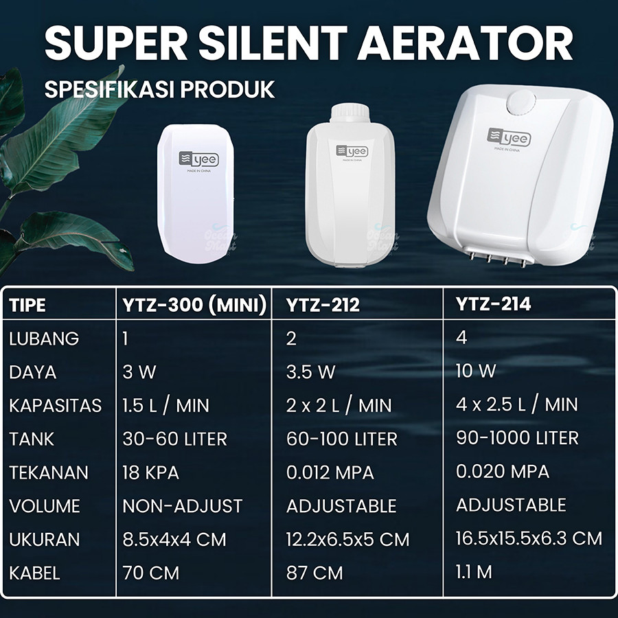 Super Silent Air Pump Aerator Aquarium Pompa Oksigen Gelembung Udara Akuarium Airator YTZ 300 212 214 AC 1 2 4 Lubang Ko