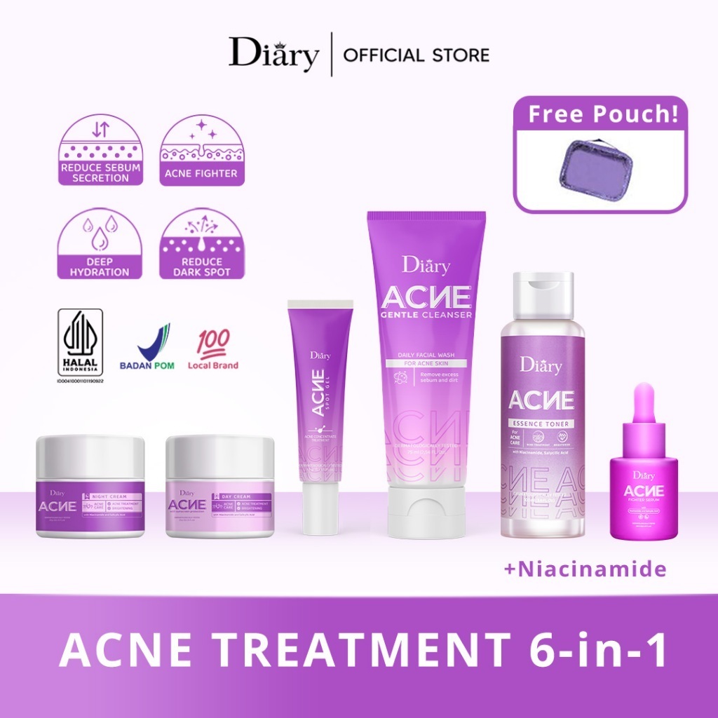 BUY 1 GET 1 Diary ACNE Skincare Whitening Paket Perawatan Wajah Jerawat Treatment Series