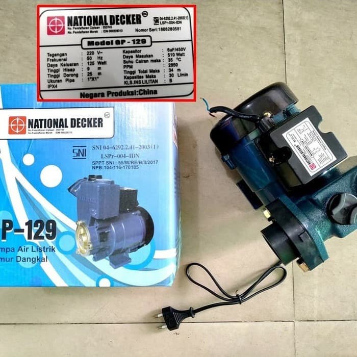 Pompa Air NASIONAL GP-125 Pompa Air Listrik Bisa Kedalaman 7 - 9 meter