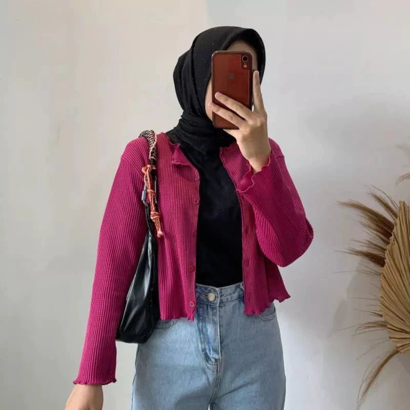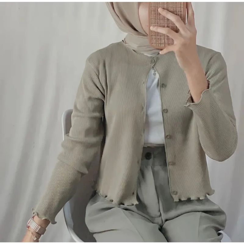 Cardigan Crop Premium / Cardigan Rajut Waffle