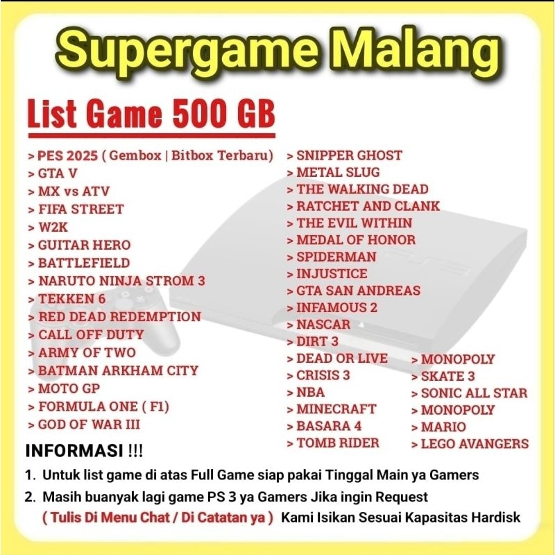 PS3 Slim 500GB Seri 25 Seri 20 Seri 3000 PS 3 Slim 500 GB 160 GB 1 TB CFW Console Game