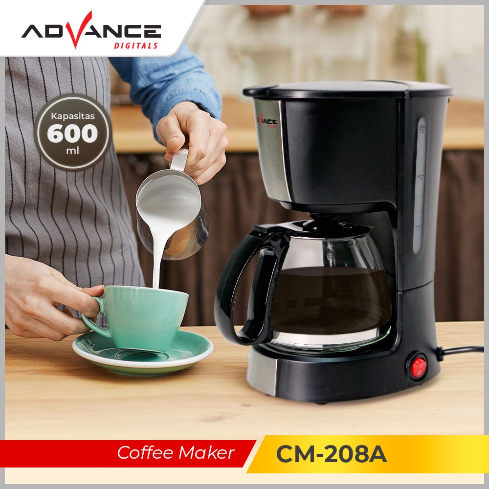 Advance Digitals Coffee Maker 0.6L Mesin Pembuat Kopi CM208A Garansi Resmi Advance Digitals 1 Tahun I Hitam