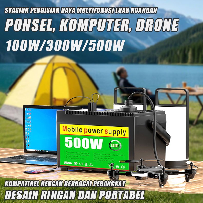 Pembangkit Listrik Tenaga Surya Portabel 220V 100W/300W/500 watt 30A Generator Pengisi Daya Tenaga Surya Luar Ruangan As