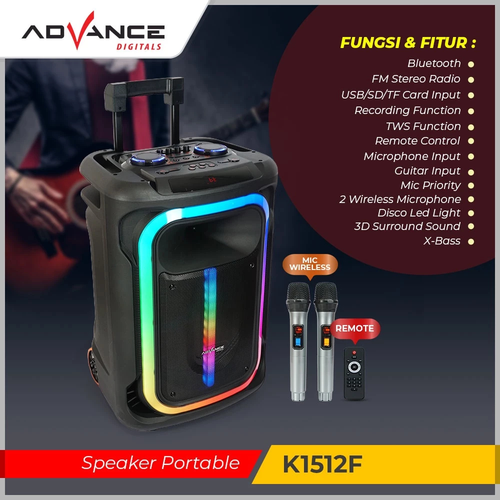 Salon Aktif Bluetooth Full Bass Advance K1512F Speaker Karaoke Keren Terbaru Garansi 5 Tahun