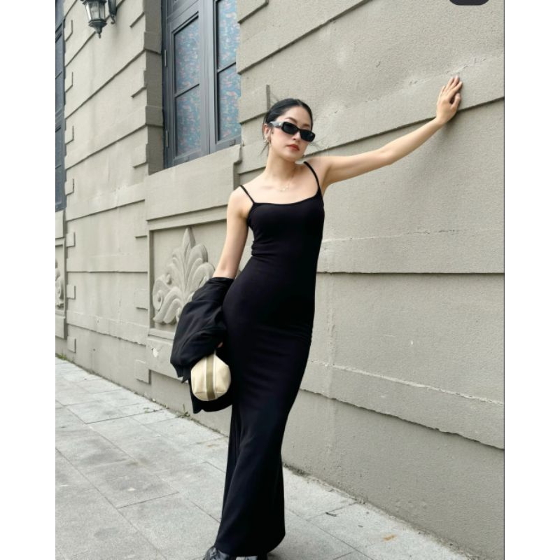 Dress Maxi Tengtop Wanita Model Panjang Bahan Spandek Premium - MAXi LONG DRESS PARTY KOREAN STYLE BODYCON TERLARIS - Simple, Formal Mini Gaun Fit Pendek Hitam Midi