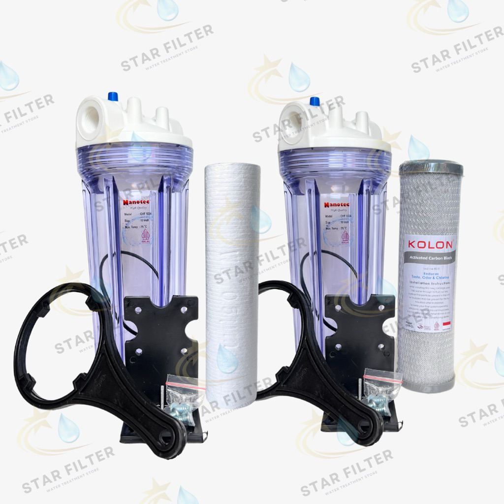 Paket Filter Air 2 Tahap untuk Air Kotor dan Bau / Filter Air PAM 10 Inch Housing + Sedimen + CTO / Reverse Osmosis