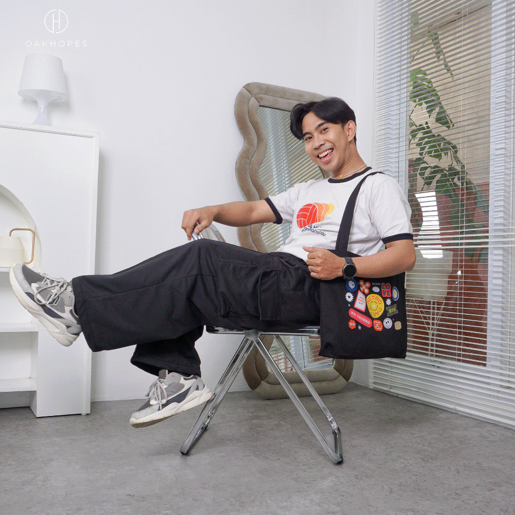 Oakhopes - Tas Tote Bag Kanvas Resleting - Clair Totebag Hitam Pria Wanita