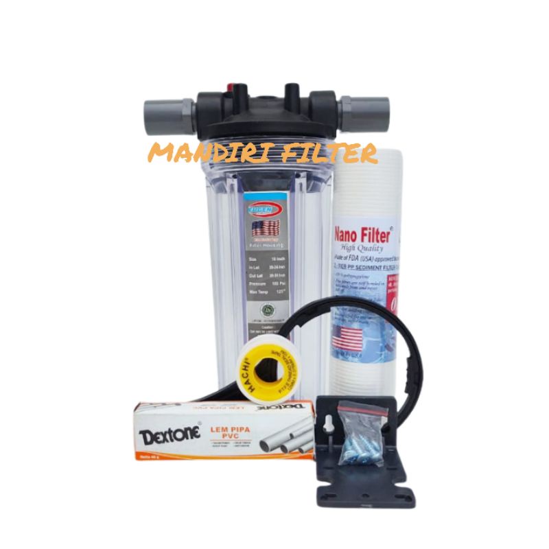 Paket Hemat Filter Air 1 Tahap Untuk Air Kotor (Clear 10" Drat 3/4" SEDIMEN)