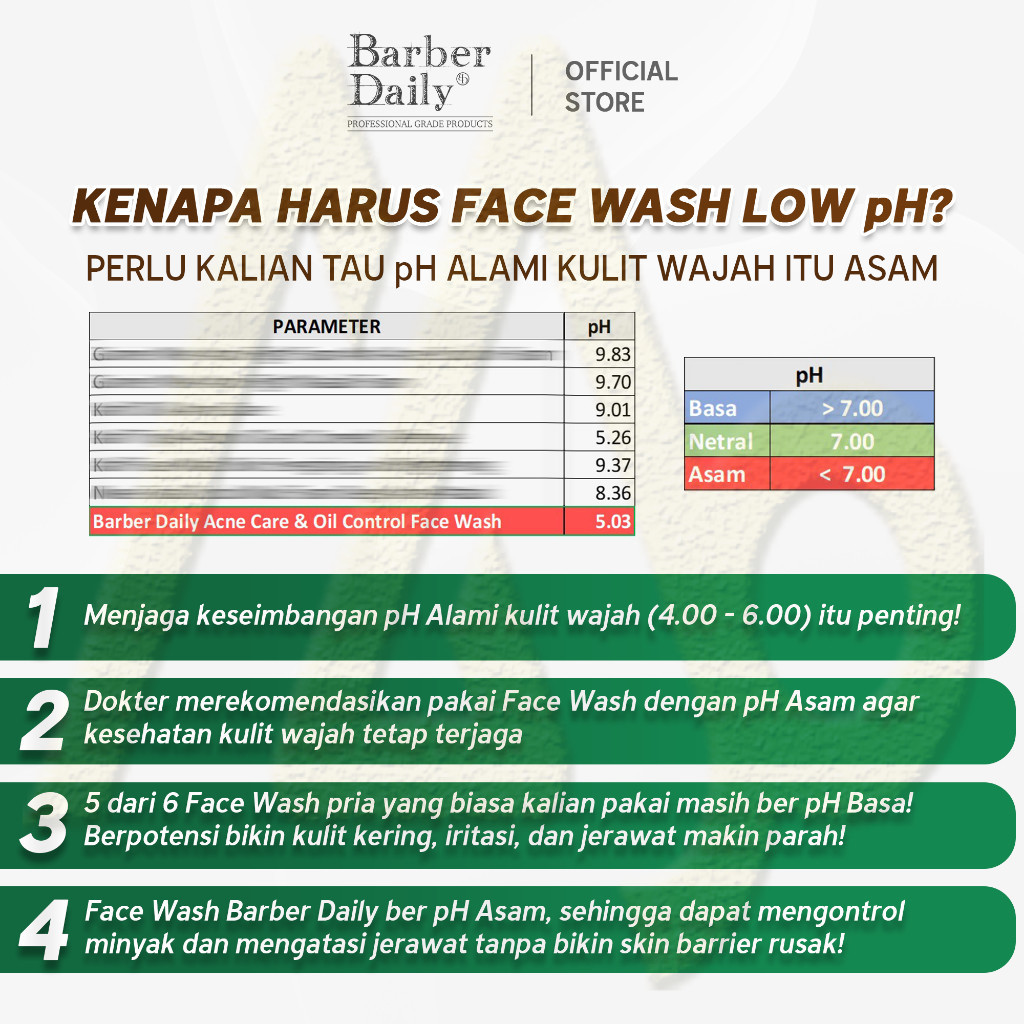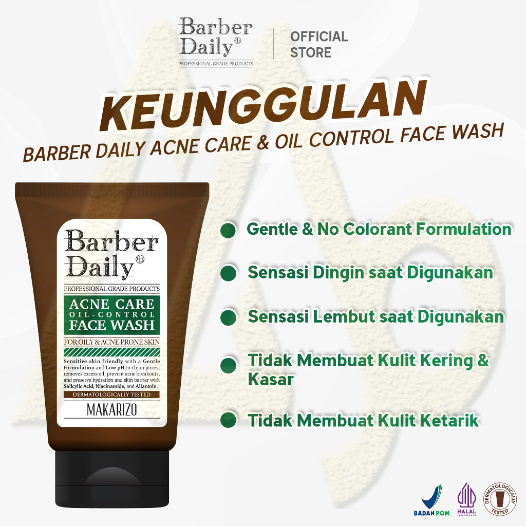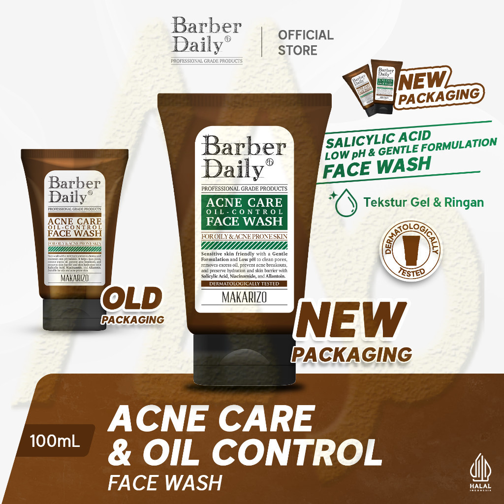 Barber Daily Acne Care & Oil Control Face Wash 100mL Makarizo Sabun Cuci Muka Cowok / Perawatan -MJB